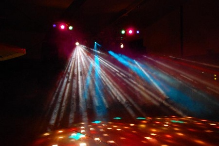 Probelauf der Musik- und Lichtanlage vor einer Veranstaltung in der Tennis-Mehrzweckhalle